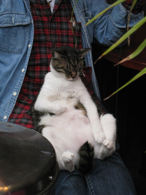 18c4dc35jpeg下北沢に良く行かれる方はご存知かと思いますし、そうでなくともどこかしらのブログでご覧になった方もいるかと思いますが、猫です。・・・とにかく、とっても可愛いやつで、おじさんのひざの上でずっとこのポーズです。下北沢にいかれたらぜひ探してみてくださいませ。